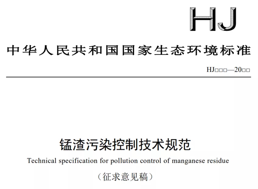 为贯彻《中华人民共和国环境保护法》《中华人民共和国固体废物污染环境防治法》等法律法规,规范和指导锰渣的环境管理,生态环境部组织编制了国家生态环境标准《锰渣污染控制技术规范(征求意见稿)》。现公开征求意见。