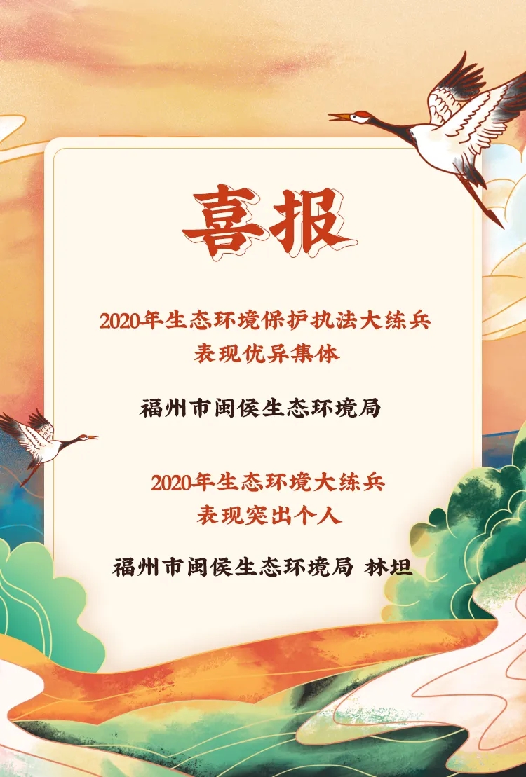 近日,生态环境部印发《关于表扬2020年生态环境保护执法大练兵表现突出集体和个人的函》,对2020年环境执法大练兵活动中表现突出的集体和个人提出了表扬。其中,福州市闽侯生态环境局因连续3年获得表现突出集体,获评2020年生态环境保护执法大练兵表现优异集体称号。福州市闽侯生态环境局林坦获评2020年生态环境大练兵表现突出个人。